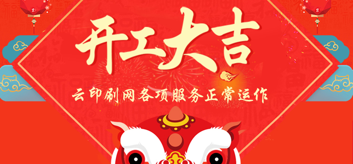 ? ? ? ? ? 一年之計(jì)在于春,正月初八,云印刷網(wǎng)開工大吉,客服、生產(chǎn)、物流等各項(xiàng)服務(wù)正常運(yùn)作,歡迎各位新老用戶光臨體驗(yàn)!在此祝您雞年生意興隆,財(cái)運(yùn)亨通,訂單銷量滾滾來!